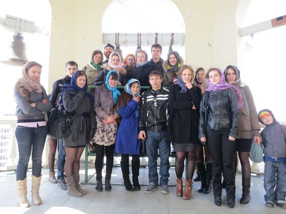 Пасхальная седмица. Десятиклассники гимназии № 7 с энтузиазмом отправляются на «духовно-музыкальную» экскурсию  – на колокольню Спасо-Преображенского собора.
