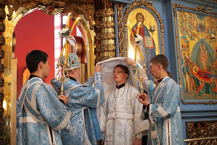 Престольный праздник в Градо-Хабаровском соборе Успения Божией Матери. Хиротония во пресвитеры диакона Олега Селезнёва. 28 августа 2012 г.