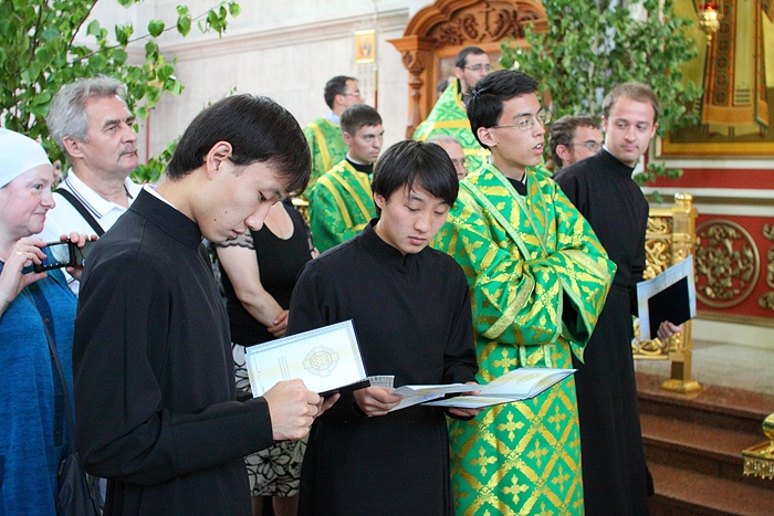 Вручение учащимся свидетельств об окончании подготовительного курса и дипломов выпускникам Хабаровской духовной семинарии. 23 июня 2013 г.