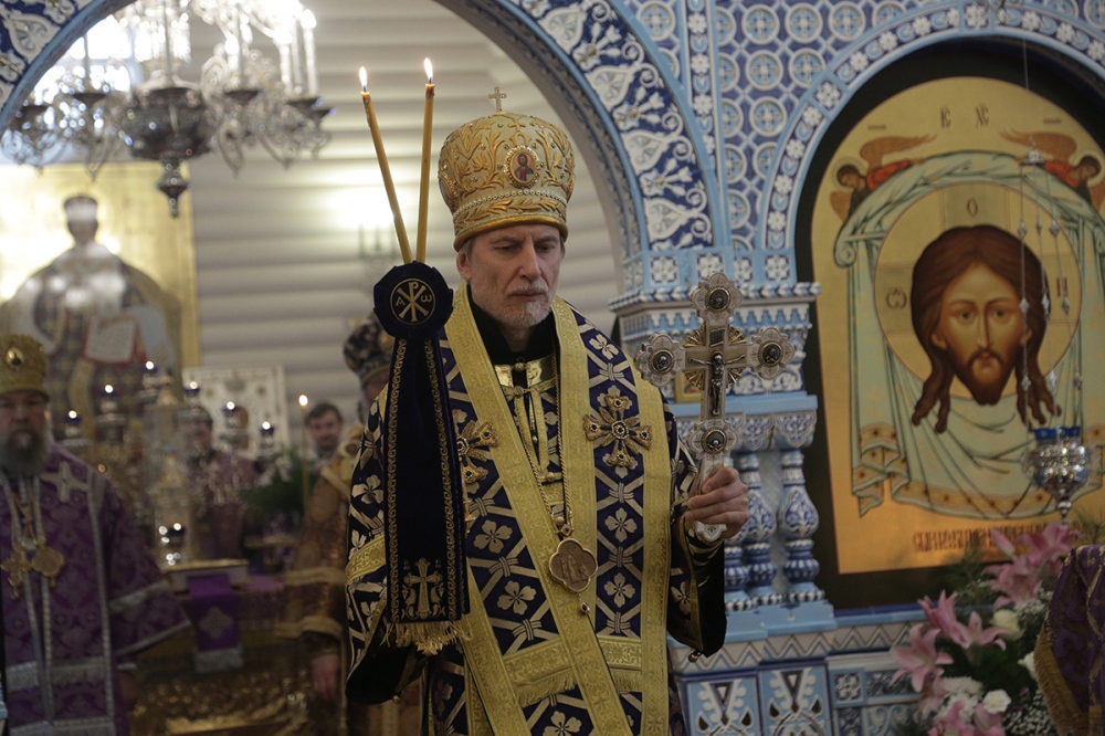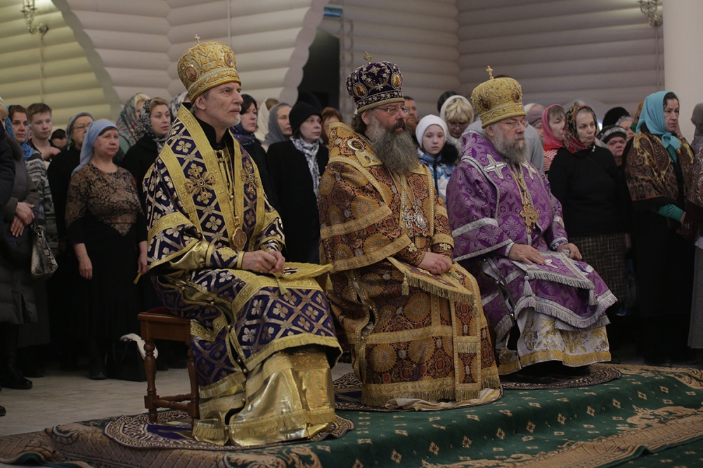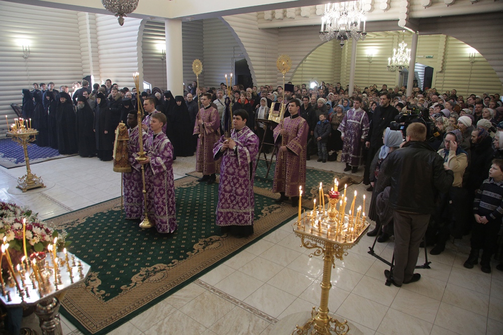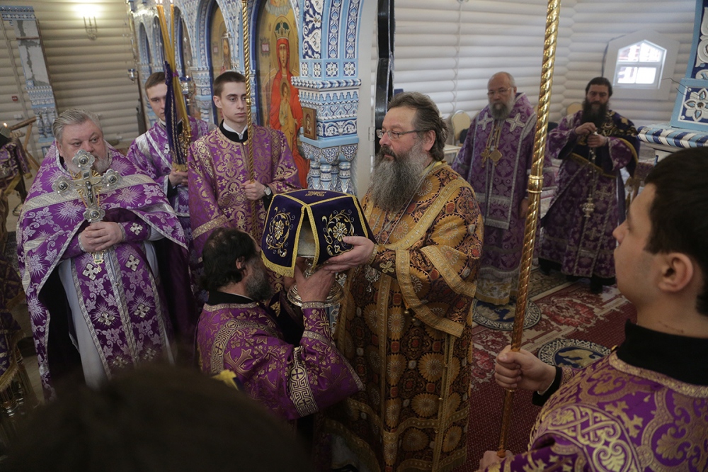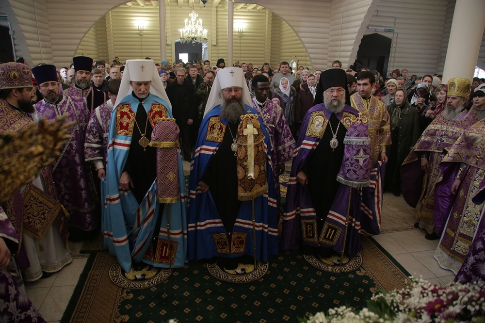 Визит главы Приамурской митрополии в Екатеринбургскую митрополию. Божественная литургия в храме Державной иконы Богородицы в монастыре святых Царственных Страстотерпцев на Ганиной Яме. 15 марта 2015 г.