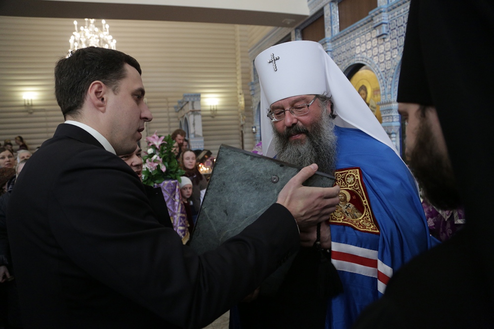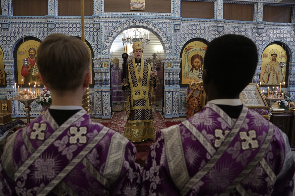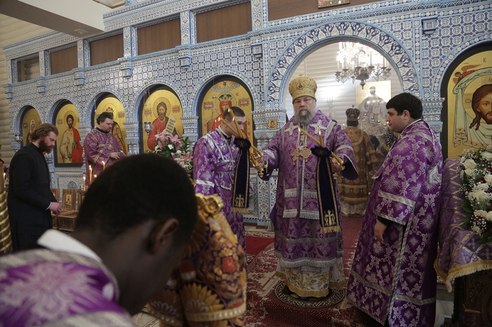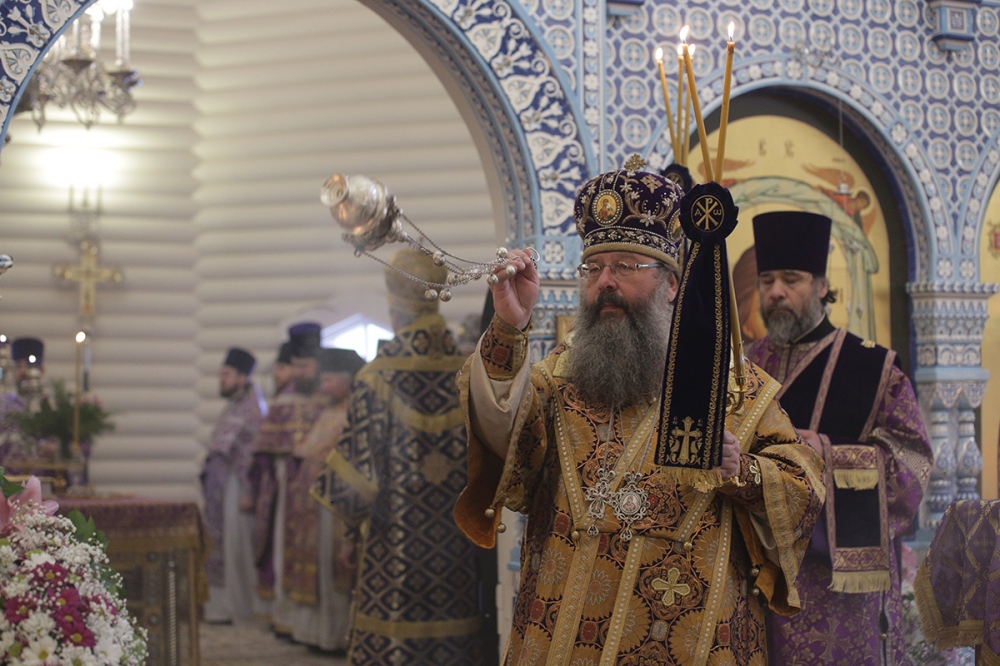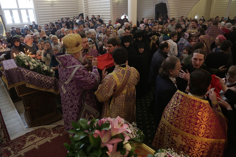 Визит главы Приамурской митрополии в Екатеринбургскую митрополию. Божественная литургия в храме Державной иконы Богородицы в монастыре святых Царственных Страстотерпцев на Ганиной Яме. 15 марта 2015 г.