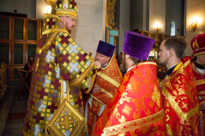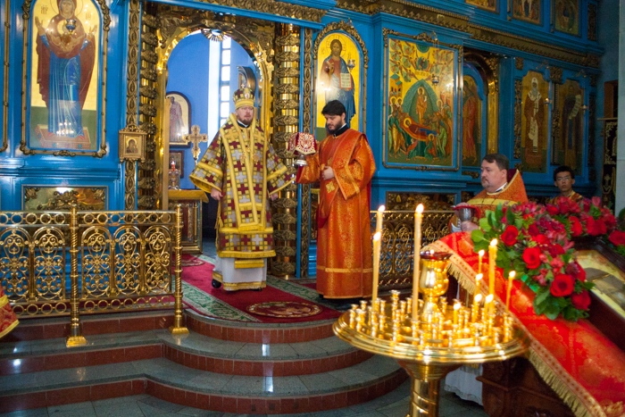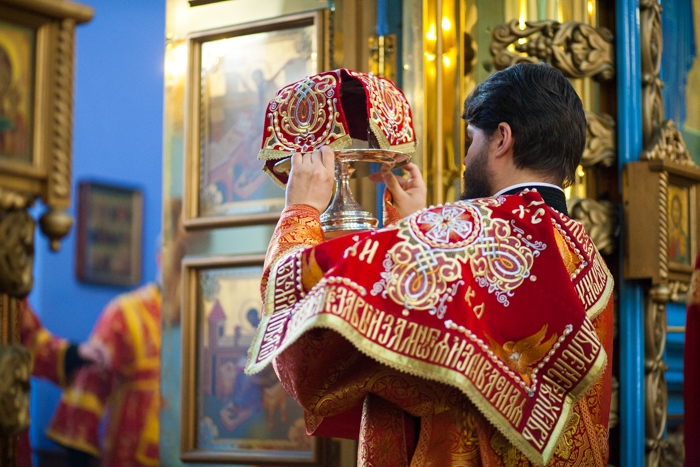 Божественная литургия в день Усекновения главы Пророка, Предтечи и Крестителя Господня Иоанна в Градо-Хабаровском храме Успения Божией Матери. 11 сентября 2016 года