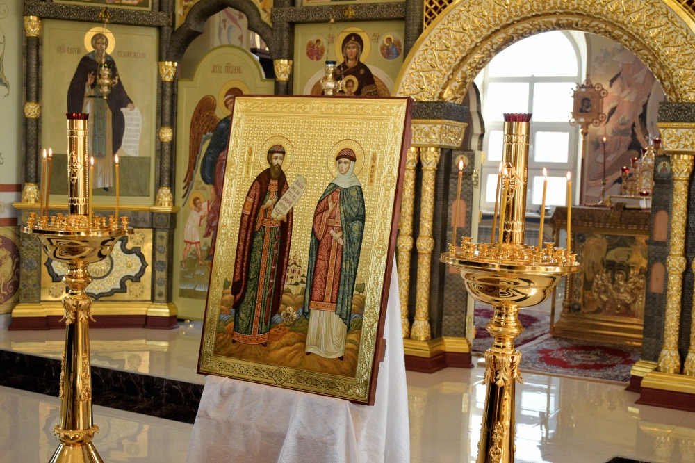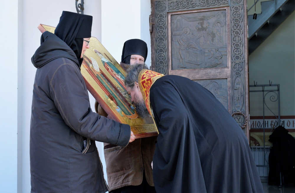 Встреча иконы с мощами святых Петра и Февронии Муромских в Петропавловском женском монастыре 23 февраля 2019 г.