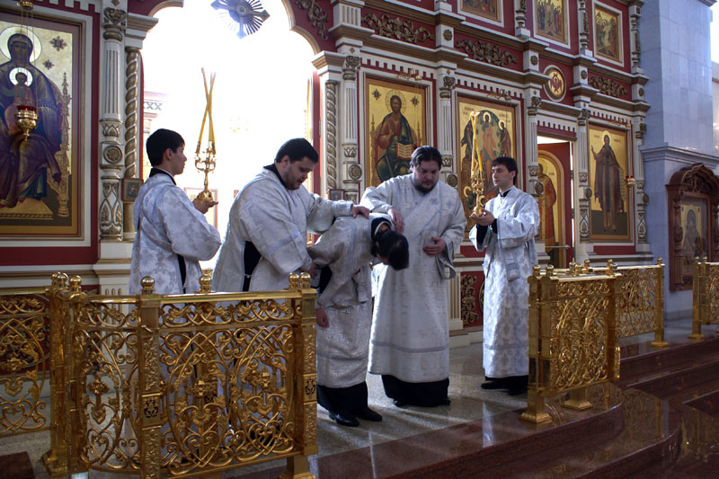 Божественная литургия по чину Василия Великого в Спасо-Преображенском кафедральном соборе. Хиротония во пресвитера и диакона.